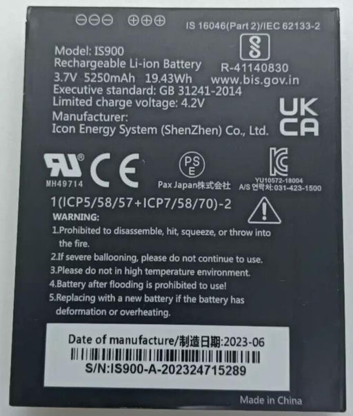 £17.993.7V 5250mAh 19.43Wh IS900 battery for PAX A920 A920C VGC