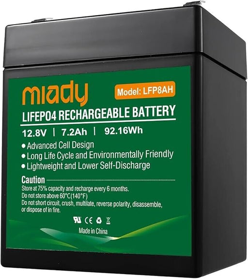 Upgrade your devices with the Miady 12.8 V 7.2 Ah LiFePO4 Lithium Battery. This battery is designed to provide reliable and long-lasting power for ...