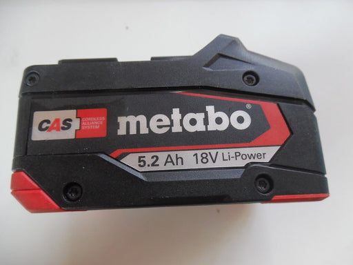 This Metabo battery pack with the model number D-72622 has a capacity of 5.2 Ah and a voltage of 18 V. It is compatible with a range of power tools...