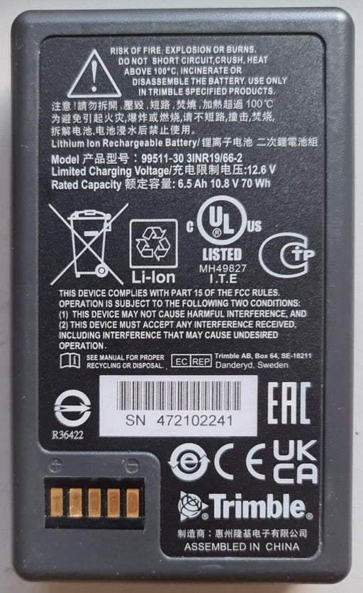 This is a 6.5Ah 10.8V Trimble 70 Wh Li-Ion Battery specifically designed for use with Trimble 472102241/012203277 Total Stations. It is a high-qual...