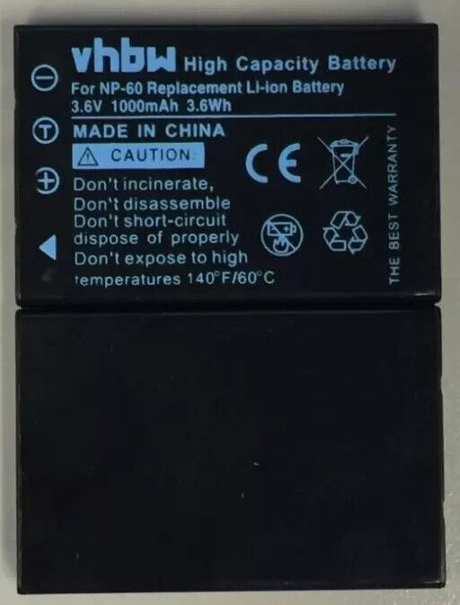 We only supply authentic, batch tested and fully EU/UK regulation compliant stockBrand: vhbwModel: NP-60Nominal Capacity: 1000mAhBattery may change...
