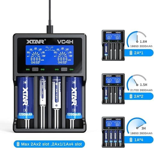 £19.99XTAR VC4H Charger 2022 NEW 18650 Battery Charger 4bays Universal 18650 Charger