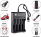 Universal Battery Charger:Compatible with the 3.6V/3.7V Li-ion Batteries 10340 10350 10440 10500 12340 12500 12650 13450 13500 13650 14350 14430 14500 14650 16500 16340 16650 17350 17500 17650 17670 18350 18490 18500 18650 Ni-MH Ni-Cd A/AA/AAA/AAAA Rechargeable Batteries.